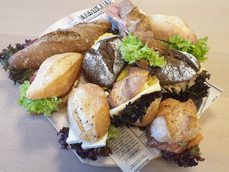 speltbroodjes en biologische broodjes. De broodjes worden belegd met de volgende belegsoorten;